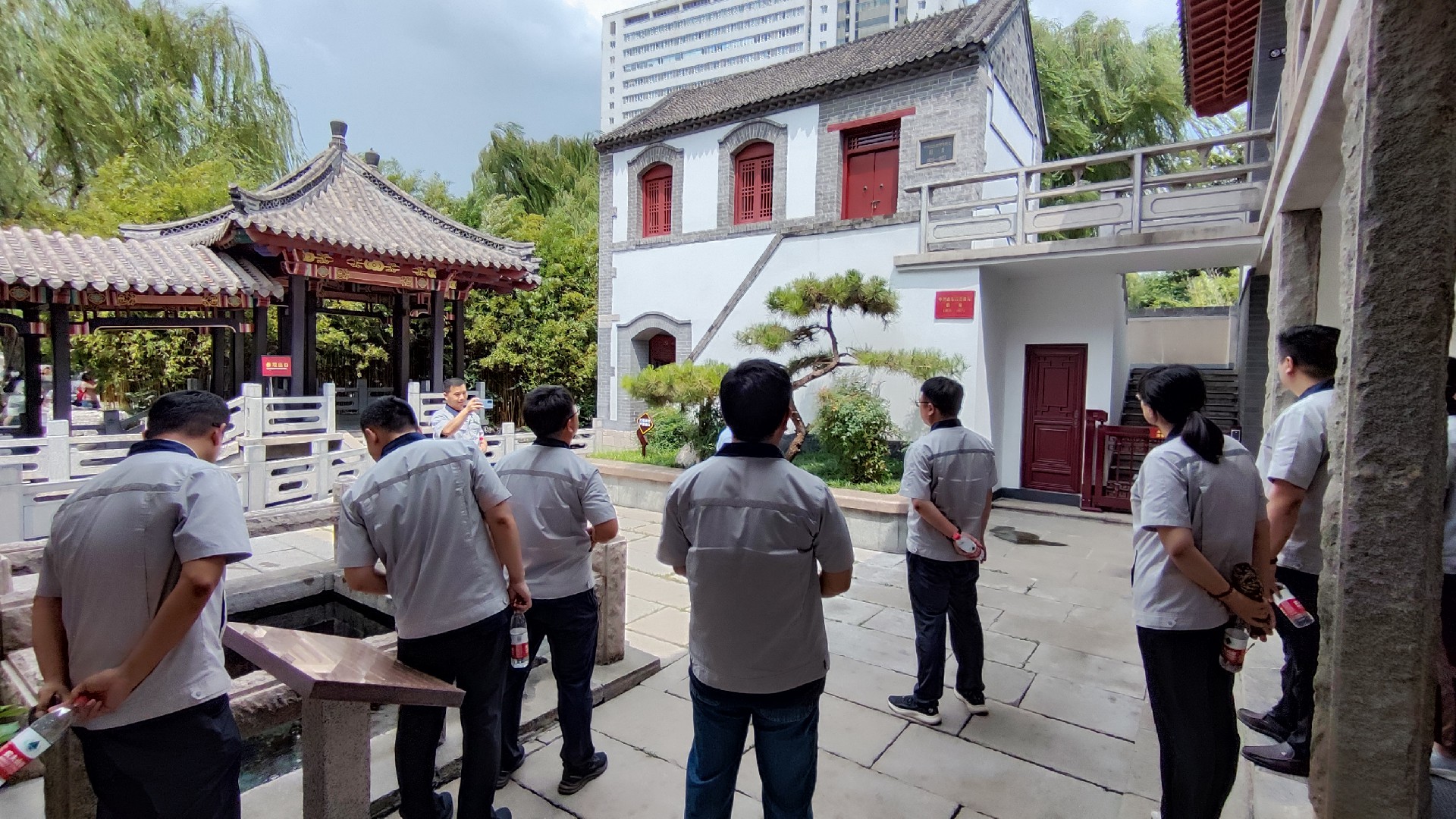 隨后大家來(lái)到室外展覽區(qū)——中共山東省委機(jī)關(guān)舊址,是一棟磚木結(jié)構(gòu)的二層小樓,位于五龍?zhí)豆珗@內(nèi),是迄今為止?jié)鲜斜4孀顬橥旰玫拇蟾锩鼤r(shí)期革命活動(dòng)原址,有著百年以上歷史。一直到1927年,中共山東地執(zhí)委領(lǐng)導(dǎo)機(jī)關(guān)均在此秘密辦公。共產(chǎn)主義的星星之火,正是從這里燎原整個(gè)齊魯大地。這里是山東黨組織夢(mèng)想啟航的地方。雖歷經(jīng)百年風(fēng)雨,紅色精神依然在齊魯大地傳承發(fā)揚(yáng)。